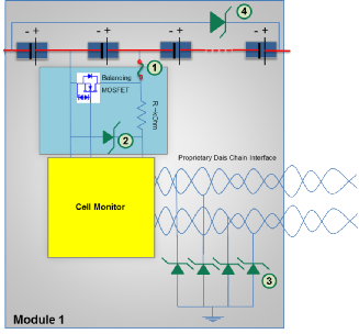 ·更多的控制器模塊的增加以及對簡化車輛中的通信網(wǎng)絡(luò)(也可以減少電纜的數(shù)量,從而降低總重量)的希望推動了對更大帶寬的需求。無論選擇哪種通信方案,雙通道和四通道低電容 ESD 陣列都可以用來提供所需的保護。