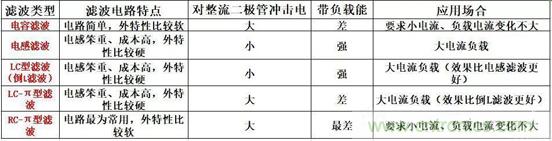 在輸出端并聯一個電容,這種電路較為簡單,只有一個一般比較大的電解電容,輸出電壓隨著輸出電流變化而變化,外特性比較軟,輸出特性很差,因此適用于負載電流變化不大的電路,同時負載電流不是很大的場合;為了減少脈動成分,有時候會并聯一大一小的電容。