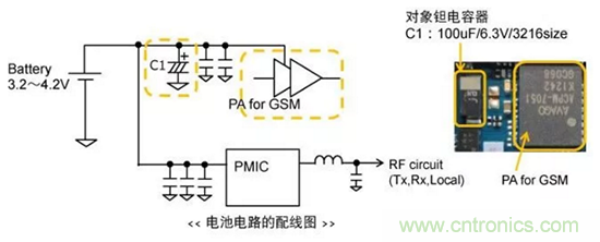 對連接在電池電路的GSM用PA電源線的Ta電容器的替換評估。
