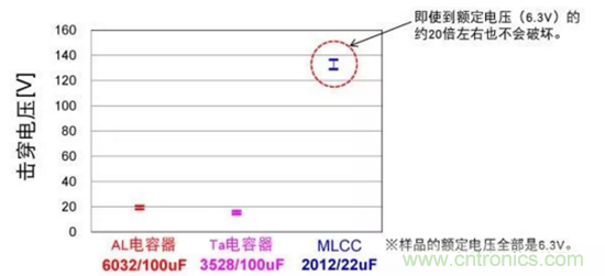 MLCC耐電壓高。