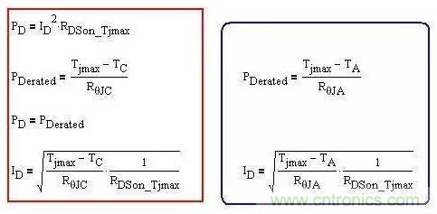 ID定義為芯片在最大額定結溫TJ(max)下,管表面溫度在25℃或者更高溫度下,可允許的最大連續直流電流。該參數為結與管殼之間額定熱阻RθJC和管殼溫度的函數: