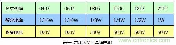 同樣,耐壓值選擇不合適的情況下,也會(huì)因?yàn)殡娮璞粨舸┒鴮?dǎo)致系統(tǒng)設(shè)計(jì)的失敗。舉個(gè)例子:AC-DC開關(guān)電源模塊在設(shè)計(jì)的輸入前端,根據(jù)安規(guī) GB4943.1標(biāo)準(zhǔn)的要求,在保證插頭或連接器斷開后,在輸入端L、N上的滯留電壓在1S之內(nèi)衰減到初始值的37%,因此,在設(shè)計(jì)時(shí)一般會(huì)采用并接一個(gè) 或兩個(gè)MΩ級(jí)阻抗的電阻進(jìn)行能量泄放,而輸入端是高壓,即電阻兩端是要承受高壓的,當(dāng)電阻的耐壓值低壓輸入端高壓的情況下,就會(huì)產(chǎn)生失效。以下表一是常見SMT厚膜電阻的參數(shù),最終選型時(shí)還要和選購器件的廠家核實(shí)。