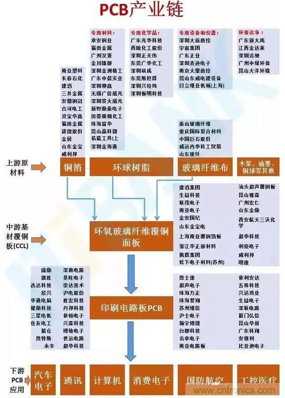 下游則是各類PCB的應用,產業鏈自上而下行業集中度依次降低。