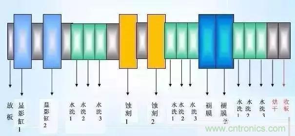 在覆銅板表面會涂一層感光液體,經過80度的溫試烤干,再用菲林貼在PCB板上,再經過紫外線曝光機曝光,撕下菲林。