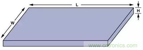 W表示印制線寬度,L表示印制線長度,H表示印制線的厚度。全部尺寸都以mm為單位。