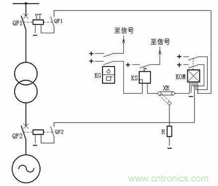 再有,連接片XE也可接至電阻R,使重瓦斯保護不投跳閘而只發(fā)信號。