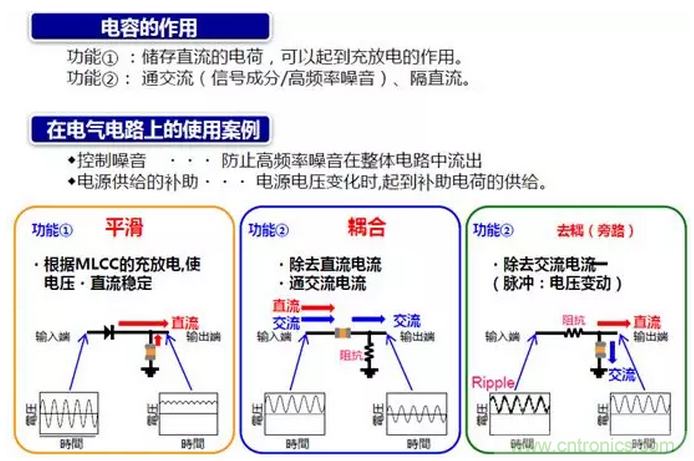 如下圖所示,電容主要有兩大功能,儲能和濾波。