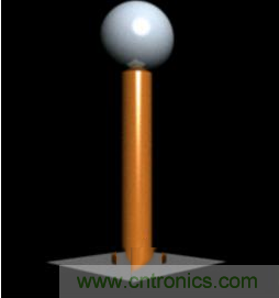 3.組裝線圈。把次級(jí)線圈的線的一頭接在那個(gè)金屬球上。這個(gè)球,我們稱為放電頂端。它和地面形成了一個(gè)電容。然后用膠或者熱膠槍把球固定在管子一頭。