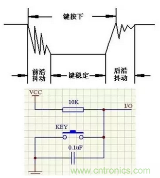 消除方法有兩種:軟件除抖和硬件除抖,其中硬件除抖是應用了電容對高頻信號短路的原理。
