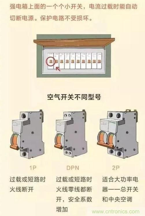 空氣開關是用來保護全家電路的,當我們的電流過大的時候會引發(fā)開關自動切斷電源。