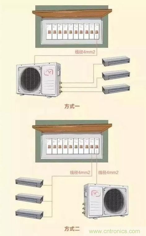 家裝中的空調(diào)一般都是單獨的線路,因為空調(diào)功率經(jīng)常不穩(wěn)定,容易出現(xiàn)超載的可能,因此每個可調(diào)都配有一個回路。