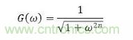 所有的濾波器設計都是在原型濾波器(低通濾波器)的基礎上進行的,將傳遞函數的s用1/s替換,則可以得到高通濾波器;如果將低通和高通濾波器串聯即可得到帶通濾波器。N階Butterworth低通濾波器的傳函幅值增益如下