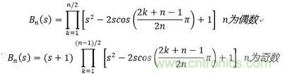 根據此特性要求,巴特沃斯低通濾波器的傳遞函數可由Butterworth多項式來實現,即