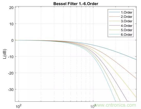 同Butterworth濾波器一樣,其階數越高,阻帶衰減也就越快,但是從通帶的幅值響應看來,其保留通帶部分的能力沒有Butterworth濾波器出色。Bessel濾波器具有最平坦的幅度和相位響應。帶通的相位響應近乎呈線性。Bessel濾波器可用于減少所有IIR濾波器固有的非線性相位失真。Bessel線性相位濾波器正是由于具有向其截止頻率以下的所有頻率提供等量延時的特性,才被用于音頻設備中。在音頻設備中,必須在不損害頻帶內多信號的相位關系前提下,消除帶外噪聲。