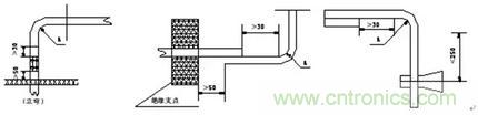 (7)母線開始彎曲處,距母線搭接位置不應小于30mm,距最近絕緣子的母線支持夾板邊緣不應小于50mm,但不應大于250mm,見下圖。