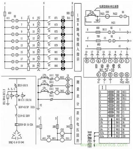 手動工作時,轉換開關KK從kk21-22開始每轉過一個位置多接通一個LED燈,表示1—8個電容器依次進入使用狀態;自動接通時,轉換開關KK如在kk1-2位置停下,那么停下的位置,其余均接通。(如下圖)