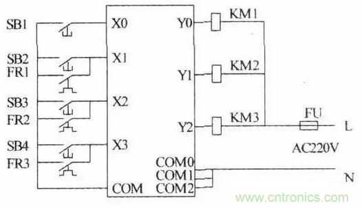 繼電器電路圖中的中間繼電器和時間繼電器的功能用PLC內部的輔助繼電器和定時器來完成,它們與PLC的輸入繼電器和輸出繼電器無關。