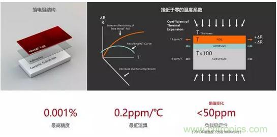 圖1:Vishay公司金屬箔電阻的結構及性能