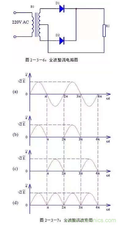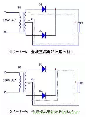 全波整流電路每個整流二極管上流過的電流只是負載電流的一半,比半波整流小一倍。