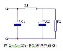 使用兩個電容和一個電阻組成RC濾波電路,又稱π型RC濾波電路。見圖2-3-27所示。這種濾波電路由于增加了一個電阻R1,使交流紋波都分擔在R1上。R1和C2越大濾波效果越好,但R1過大又會造成壓降過大,減小了輸出電壓。一般R1應遠小于R2。