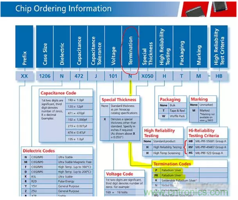 對于Knowles Novacap來說,它們的環氧樹脂安裝代碼由“P”(非RoHS)和“PR”(RoHS)指定為“鈀銀”端子。