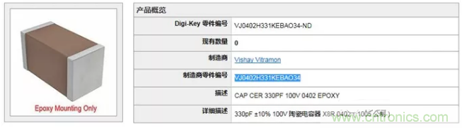 并非所有MLCC電容的供應商都提供這種環氧樹脂安裝選項,如Digi-Key代理的原廠中,有四家提供該選項 - TDK, Murata, Vishay Vitramon和Knowles。