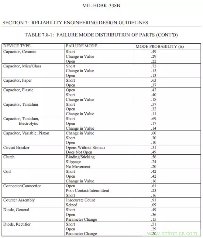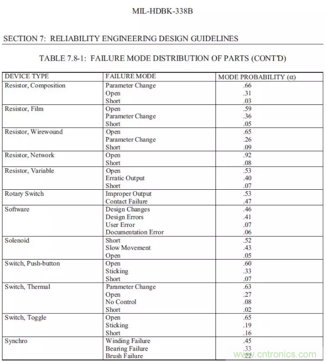 以下數(shù)字僅供參考,本身MIL-HDBK-338B是一份指導書性質(zhì)的,所有的數(shù)字僅僅具有參考意義。