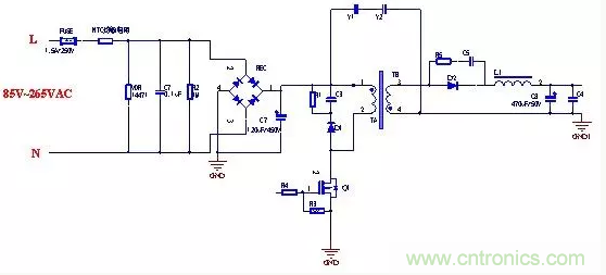 應用很多隔離式開關電源在初級和次級上加Y電容是為了給次級的共模電流提供一個回路到初級,減少共模電流對輸出的影響。Y電容串接在高壓地和低壓地之間,有時會采用兩個Y電容串聯是為了提高高壓地和低壓地之間之間的耐壓,有時候會出現耐壓不足的情況,導致安規電容打耐壓過不了,可以選用高壓陶瓷電容作為Y電容,Y電容通常接法有四種情況: