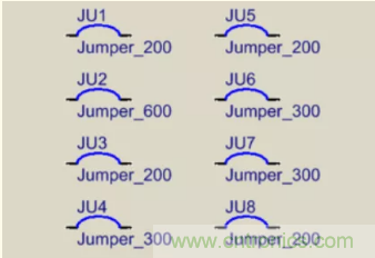 一旦創(chuàng)建了符號,注意:A.設置默認的指示符,在本例中為ju? B.將組件類型設置為跳線 C.將各種跳線腳印添加到模型列表中,如上圖所示 D.定義所需的其他組件屬性,例如描述和任何必需的組件參數(shù)。一旦設計好了跳線器,就可以把它們中的一些放到原理圖上。在這個階段,你可能不知道自己需要多少個跳線,但額外的可以很容易地刪除。它們是在原理圖上,可以確保他們進入BOOM。如下圖: