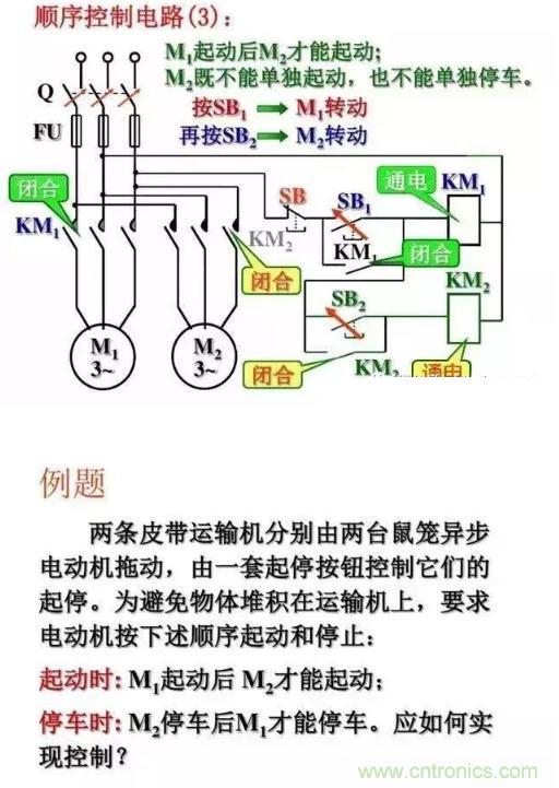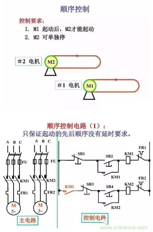 【導讀】在電氣控制電路里,順序控制也是應用很廣泛的電氣控制電路,經常被用在傳送帶,工業流水線,機械手等控制當中,關于順序控制電路,簡單一句話就說明原理:一個接一個的啟動,全部停止或者一個接一個的停止,今天我們就重點來看一下順序控制電路和具體實例。