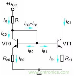 當Re0=Re1時,IC1仍然等于IR,但此電路的IR由式(2-4)約定,比式(2-2)的IR小,一般用于前置放大器的輸入級。