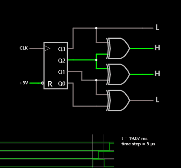 該電路以格雷碼進行計數,這是一種二進制計數系統,每次更新計數時,只有一位數字發生變化。