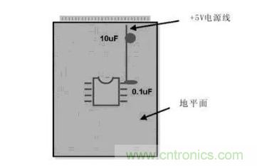 在布線時,模擬器件和數(shù)字器件都需要這些類型的電容,都需要靠近其電源引腳連接一個電容,此電容值通常為0.1uF。系統(tǒng)供電電源側需要另一類電容,通常此電容值大約為10uF。