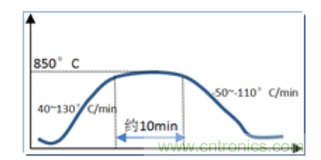 3. 爐溫曲線,傳輸鏈速(5.45~6.95IPM(英寸/分))。