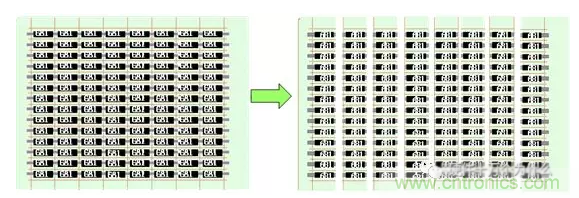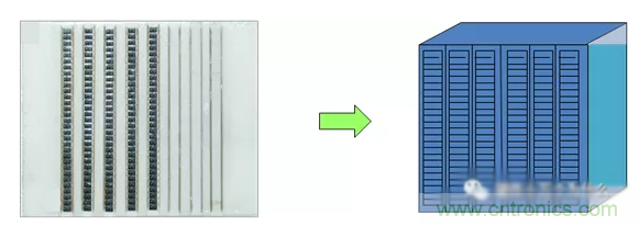【制造方式】用折條機按照基板上原有的分割痕將基板折成條。