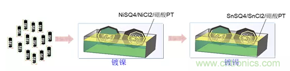 原理:先進行預熱,預熱溫度110°C ,然后利用真空高壓將液態的Ni濺渡到端面上,形成側面導體。Ni具有良好的耐腐蝕性,并且鍍鎳產品外觀美觀、干凈,主要用在電鍍行業。