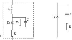 RC緩沖電路是解決功率二極管反向恢復(fù)問題的常用方法。在高頻下工作的功率二極管,要考慮寄生參數(shù)。圖7(a)為電路模型,其中D0為理想二極管,Lp為引線電感,Cp為結(jié)電容,Rp為并聯(lián)電阻(高阻值),Rs為引線電阻。如圖7(b)所示,將電容C和電阻R串聯(lián)后并聯(lián)到功率二極管D上。二極管反向關(guān)斷時,寄生電感中的能量對寄生電容充電,同時還通過緩沖電阻R對緩沖電容C充電。在同樣能量的情況下,緩沖電容越大,其上的電壓就越小;當(dāng)二極管正向?qū)〞r,C通過R放電,能量絕大部分在R上消耗。