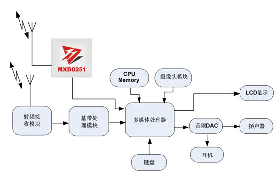 圖1:基于MXD0251的CMMB移動數字電視終端系統架構。