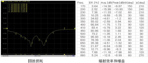在結構上確定好天線后,需要做天線的匹配調試。天線匹配的目的是減少信號反射,提高信號傳輸效率。對于UHF接收頻段,建議天線匹配電路預留一個Π型的網絡。良好的天線匹配應使得在工作頻段內,回波損耗小于-6dB, 天線整體的平均增益大于-4dBi,平均輻射效率大于40。再根據有源測試的結果做數據分析,以確定是否需要再修改天線匹配,以真正實現匹配的共軛,或有目的地優化某個頻段的性能。