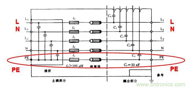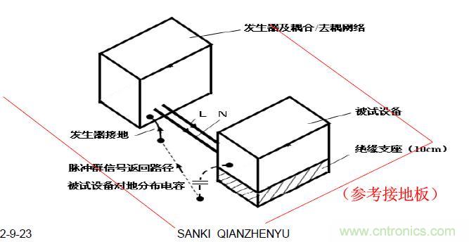同樣,試品如通過三芯電源進線(單相,一根L,一根N,及一根電氣接地線),而未設專門接地線時,則此試品也不允許另外再設接地線來接地,而且按標準要求,試品的這根電氣接地線還必須經受抗擾度試驗。