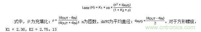 式中,a為線圈的平均半徑,單位為英寸;n為匝數;c為線圈磁芯的寬度(rOUTER - rINNER),單位為英寸。當線圈的c  > 0.2a時11,該計算方法的精度在5%之內。