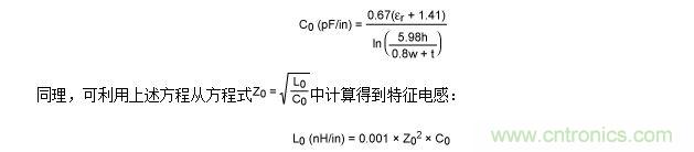 為評估引線長度的影響,確定引線寄生參數對理想電路的去諧效應更實用。本例中,我們討論雜散電容和電感。用于微帶線的特征電容標準方程為: