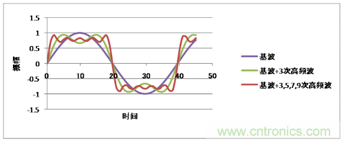 下圖所示的是正弦波的高頻波(擁有基本波整數倍頻率的波)重疊而成的例子,可以看到當高頻波越多圖形就越接近矩形波。矩形波相當于這些高頻波持續重疊在一起的波紋。