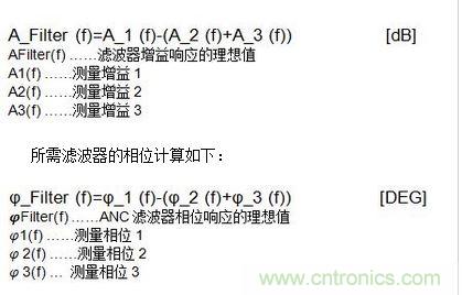 一旦完成這三項測量,我們就能夠用測量結果來計算ANC濾波器的理想值。所需的濾波器振幅計算如下: