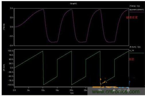 上面DCM和CCM磁滯回線的仿真是基于安匝源,但是反激式是初級安匝給磁芯儲能,mos關斷后,有磁動勢反轉磁力線,應該有些不同,這個后面看下能用反激式拓補結構仿真出來么。