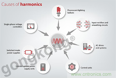 變頻器中使用的經典整流器會產生高達50次(2.5 kHz)的諧波。諧波會在電網中產生相關的問題,但變頻器的普及,這個頻段已經被EN 61000-3-4和3-2等標準所覆蓋。