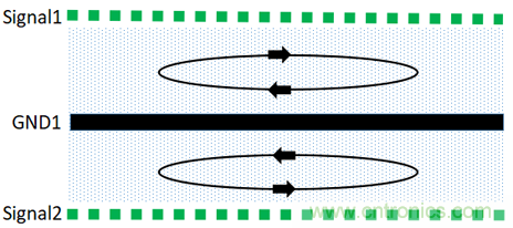 (1)此種結(jié)構(gòu),由于信號(hào)層與回流參考平面相鄰,S1和S2緊鄰地平面,有最佳的磁通抵消效果;