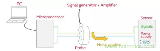 傳感器的信號線收到噪聲影響,傳感器的通信會發生停止。提高注入的噪聲水平,調查能夠正常工作(不發生誤操作)的水平極限。