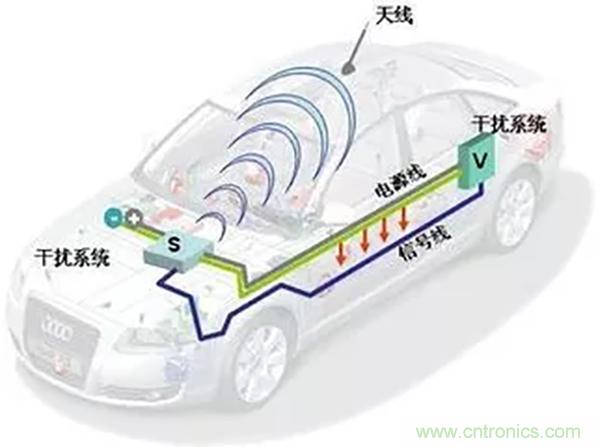 與傳統汽車相比,新能源汽車EMC問題更加突出。新能源汽車動力直接使用電驅動系統,高壓附件的使用會使電磁干擾問題的更為嚴重。動力系統由于電流在極短時間內的跳動以及大功率半導體開關的快速移動會發出強烈的輻射以及電磁干擾。