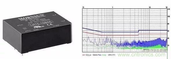雖然電源自身電磁干擾方面投入了很大的設(shè)計成本,也符合承諾的各項指標(biāo)要求,但是電源在市場應(yīng)用方面還是難免出現(xiàn)電磁干擾超標(biāo)的問題;此時,很多的設(shè)計工程師都會認(rèn)為問題的根源在于電源,這方面的認(rèn)識其實是有誤區(qū)的,因為電磁干擾傳導(dǎo)騷擾測試項目,主要是針對電源端口的,那么電源端口就成了他的傳輸路逕,所有的電磁干擾都會經(jīng)過電源端口到達(dá)被測設(shè)備,但是測試設(shè)備測試到的電磁干擾除了來自電源本身外,主要的部分還包括整機(jī)中的其他部分產(chǎn)生的電磁干擾,以及設(shè)備內(nèi)部寄生參數(shù)的諧振產(chǎn)生的電磁干擾,這一類電磁干擾會通過電源端口耦合到測試設(shè)備,電源內(nèi)部的濾波器是無法進(jìn)行實現(xiàn)對這部分電磁干擾進(jìn)行濾波,電源應(yīng)用環(huán)境千差萬別,所有電源設(shè)計濾波器部分都是以解決自身的干擾為首要考慮條件的同時,濾波器衰減特性及頻譜特性盡量會預(yù)留最大的余量,但不可能兼容所有應(yīng)用場合;那么這就要求我們的整機(jī)設(shè)計人員在設(shè)計電源前端時候,一定要按照電源廠家推薦的應(yīng)用電路進(jìn)行設(shè)計,例如:LH15產(chǎn)品應(yīng)用過程中出現(xiàn)EMI超標(biāo)問題(見下圖)。